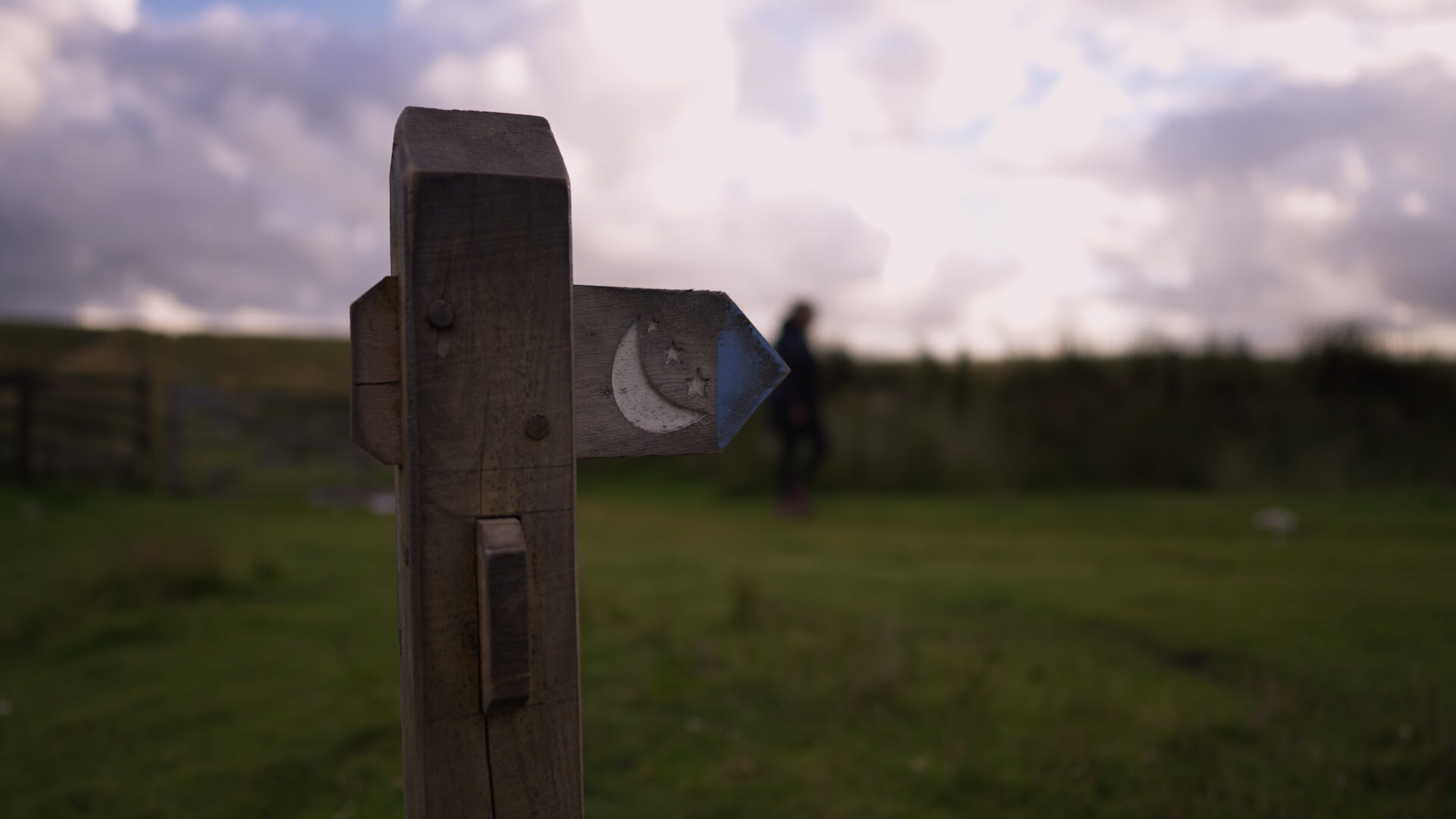 We arrived just as the sun was setting, in near-perfect conditions for a night-time adventure. As we set off along the wide, stony path, under almost-cloudless skies, there was barely a breath of wind and for once the forecast had held true. At intervals amongst the long, shaggy purple moor grass we spied the backs of sheep grazing and on the path was ‘evidence’ that a large herd of cattle had passed through, who were now staring back at us in the distance. My sons were excited to climb up every bank and patch of raised ground to wonder at just how far they could see, the humidity and expanse reminiscent of a great African plain. The route is marked out with beautifully carved traditional waymarker signs that are just as easy to follow by night as by day thanks to their luminescent paint.